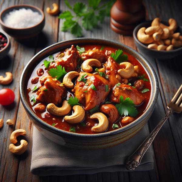 Poulet aux noix de cajou Stew chicken with cashews.