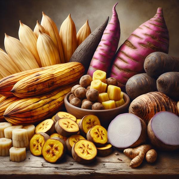 Legumes feculents Caribbean provisions- yucca, plantain, yam, taro