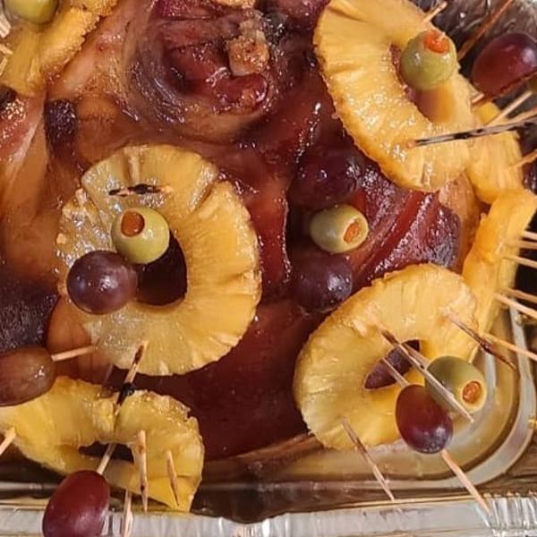 Jambon entier rôti Whole baked ham.