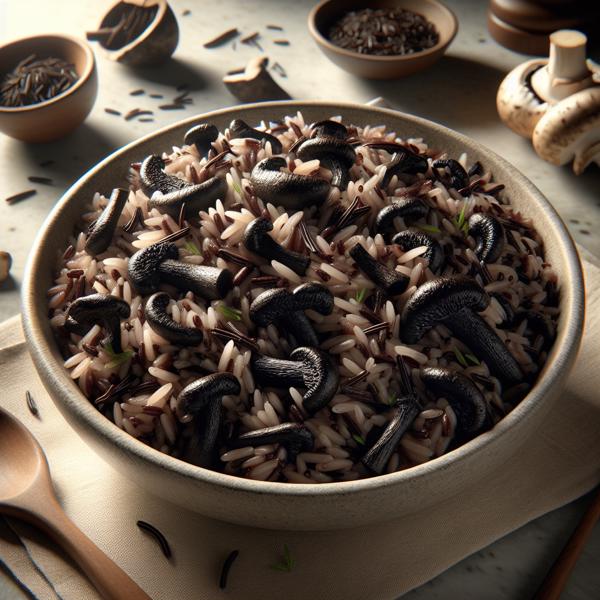 Riz aux champignons noirs (djondjon) Rice with Haitian black mushrooms.